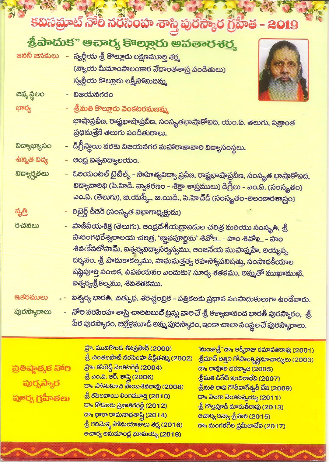 ← కవి సామ్రాట్ నోరి నరసింహ శాస్త్రి గారి ౧౨౦వ జయంతి మహోత్సవ ఆహ్వానం -6-2-19 సా 6-త్యాగరాజ గాన సభ -హైదరాబాద్