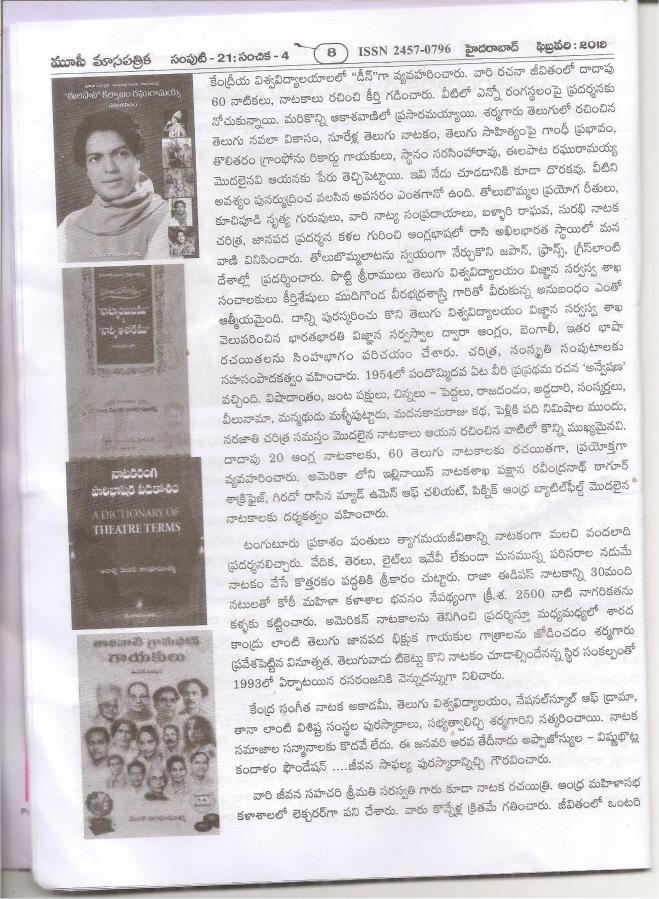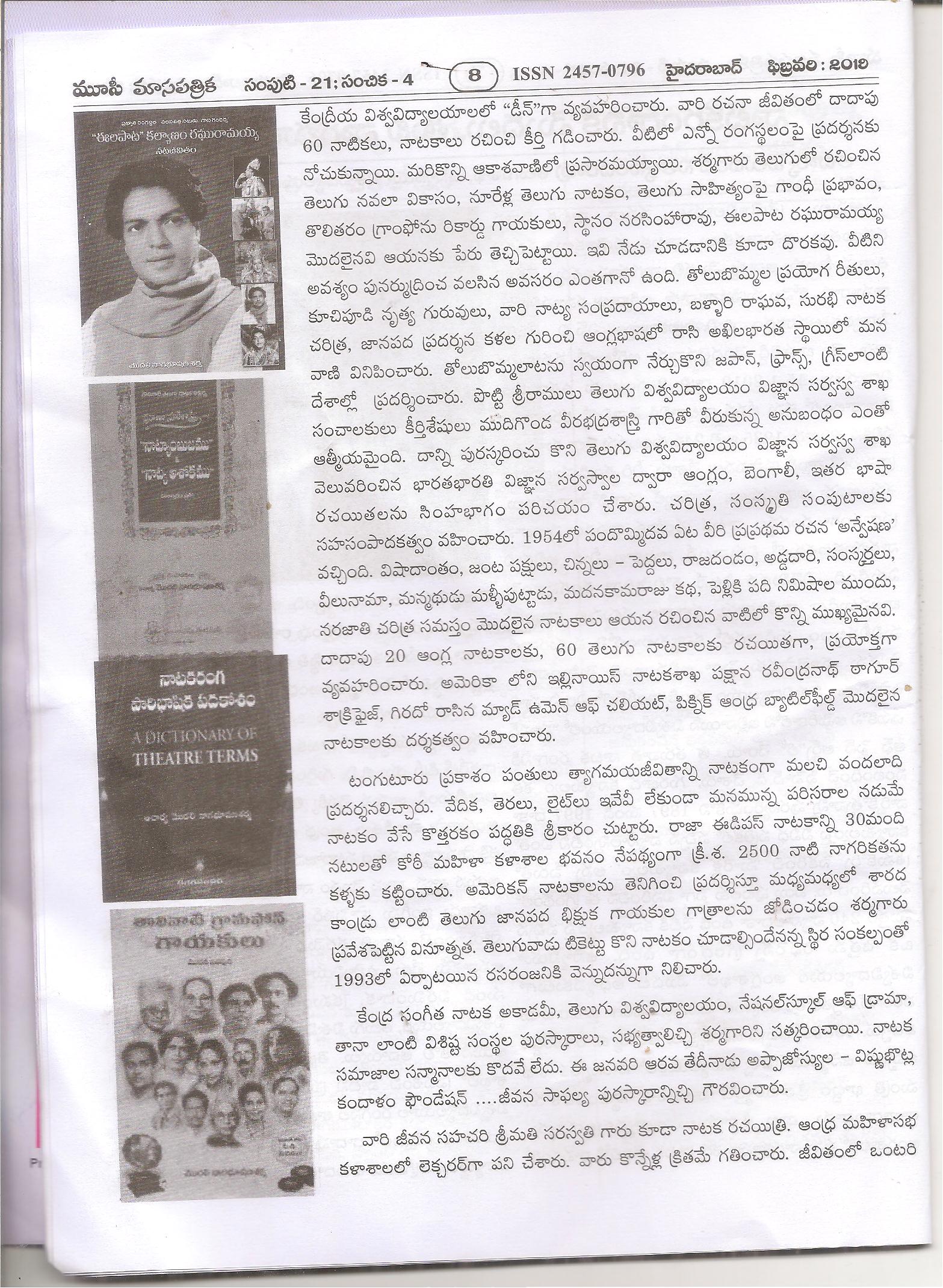← నాటక రంగానికి మొదలు ,తుదీ శ్రీ మొదలి నాగభూషణ శర్మ -మూసి -ఫిబ్రవరి