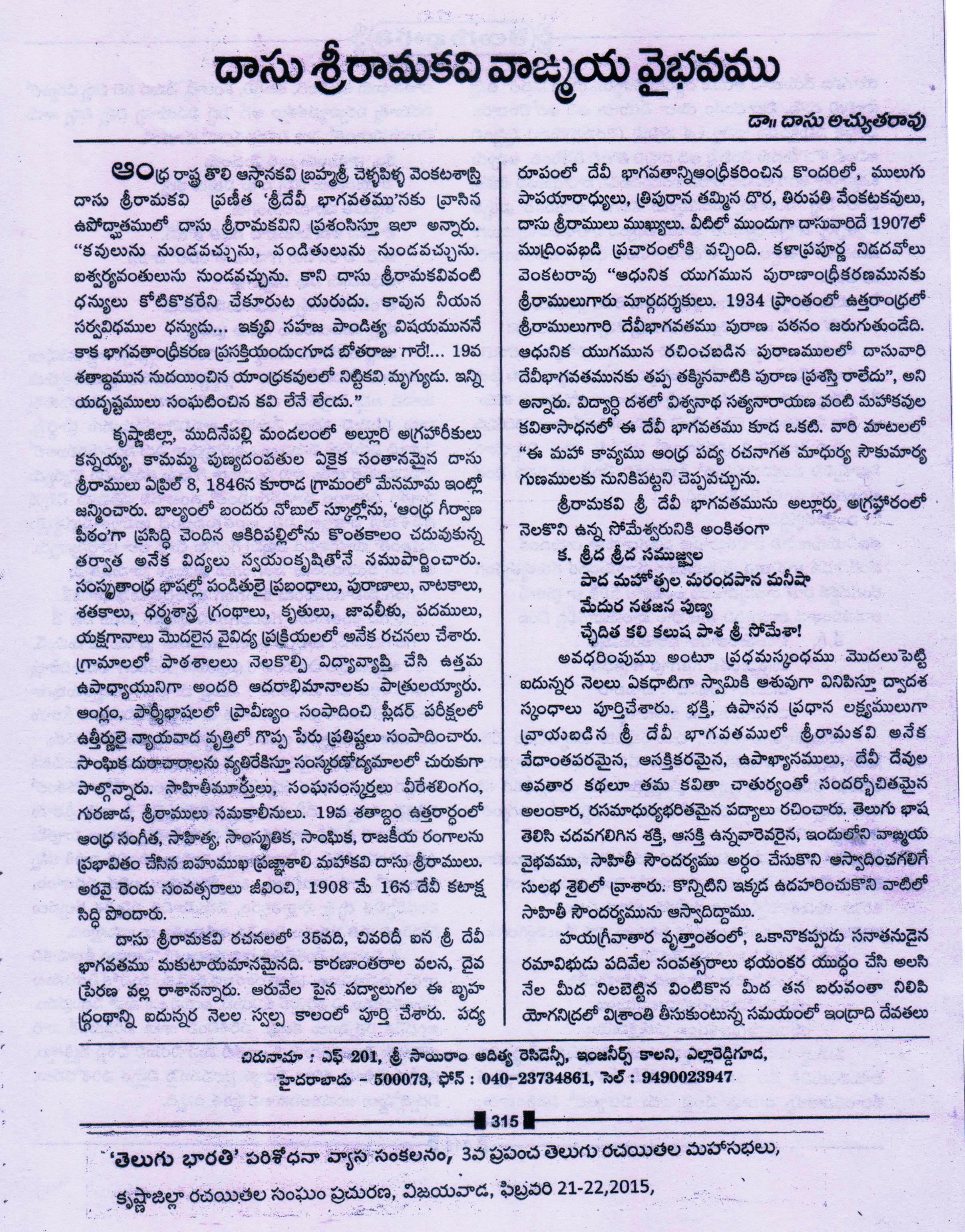 21.1Dasu Sriramakavi Vamgmaya Vaibhavamu,Telugu Bharathi Feb.2015