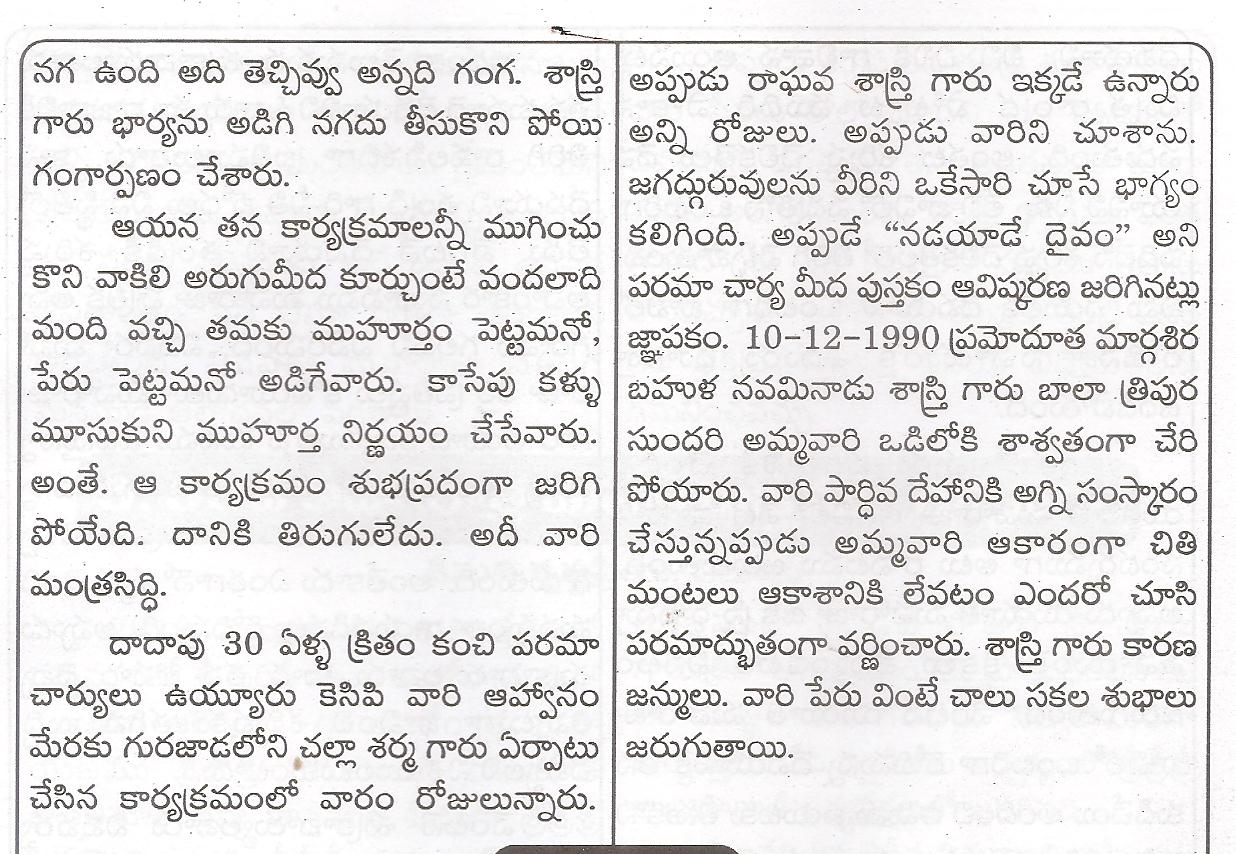 ← బాలా త్రిపుర సుందరి మంత్ర మహాయోగి శ్రీ తాడేపల్లి రాఘవ నారాయణ శాస్త్రి గారు