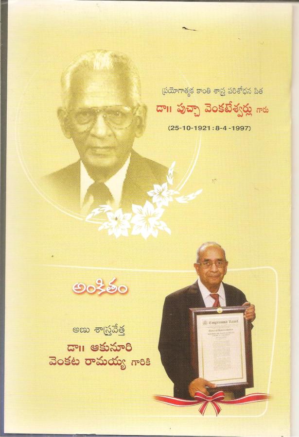 ← ప్రయోగాత్మక కాంతి శాస్త్ర పరిశోధనపిత డా పుచ్చా వెంకటేశ్వర్లు -కరదీపిక విశేషాలు