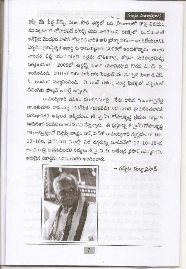 ← ప్రయోగాత్మక కాంతి శాస్త్ర పరిశోధనపిత డా పుచ్చా వెంకటేశ్వర్లు -కరదీపిక విశేషాలు