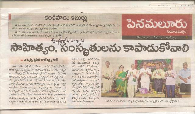 సరసభారతి శ్రీ వికారి ఉగాది వేడుకలపై ఆంధ్రజ్యోతి వార్త-2-4-