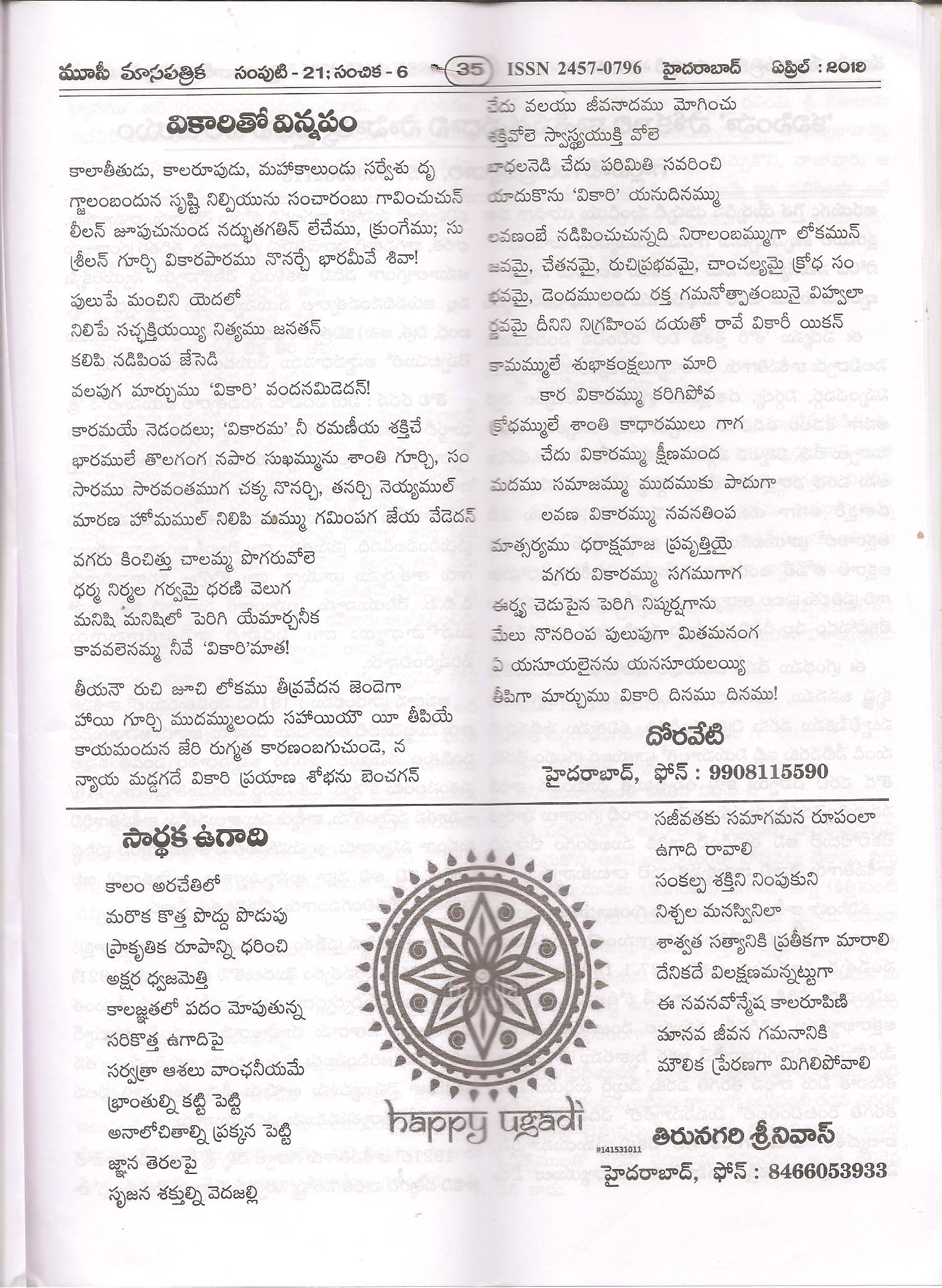 ← మూసీ ”మార్చి సంచికలో వికారి ఉగాది పద్యాలు