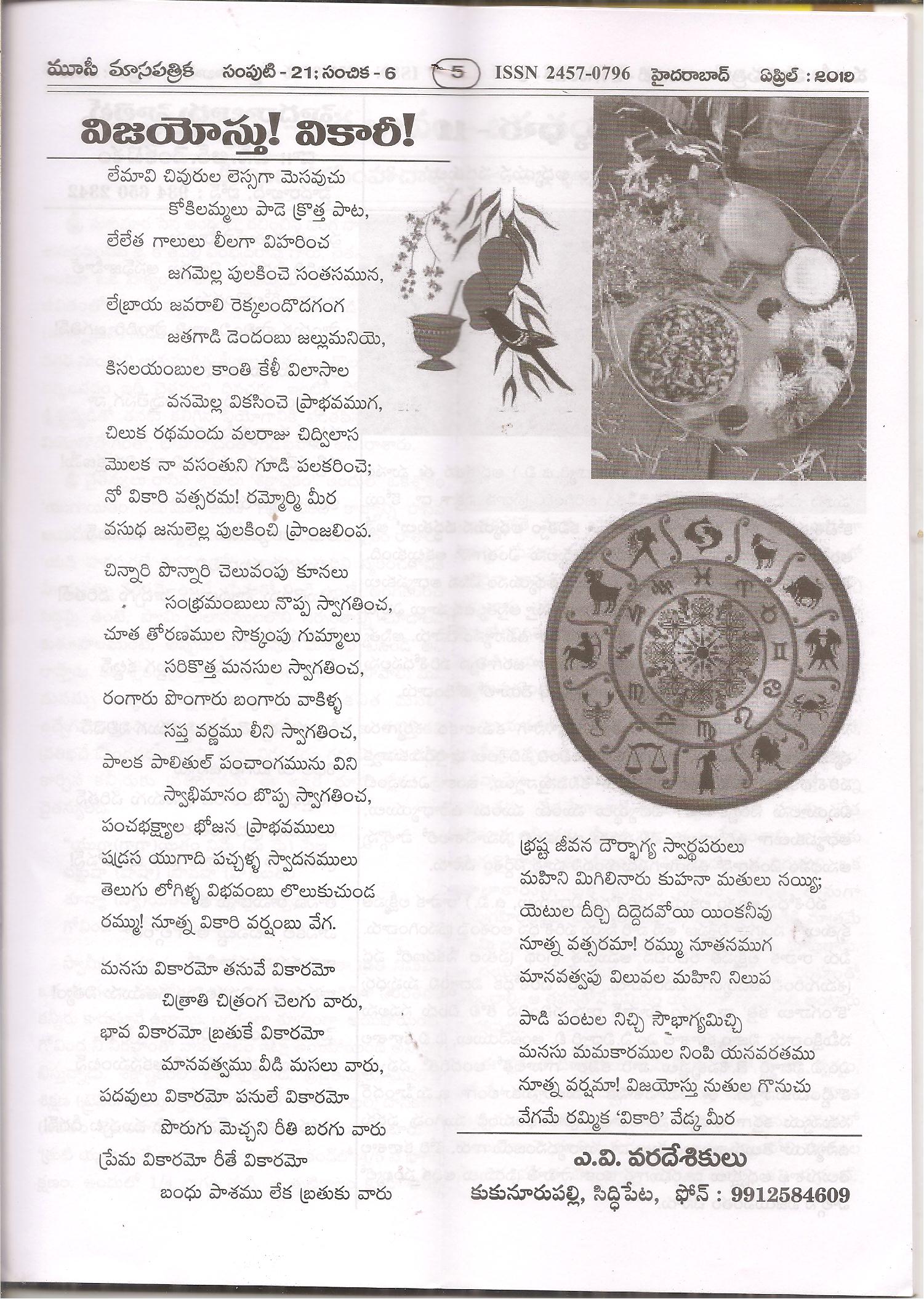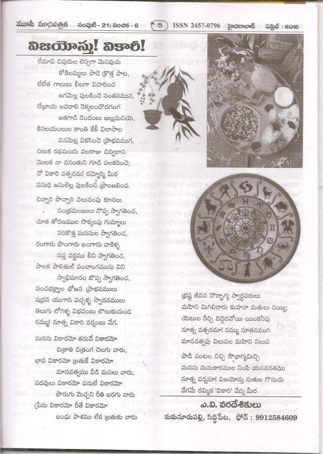 ← మూసీ ”మార్చి సంచికలో వికారి ఉగాది పద్యాలు
