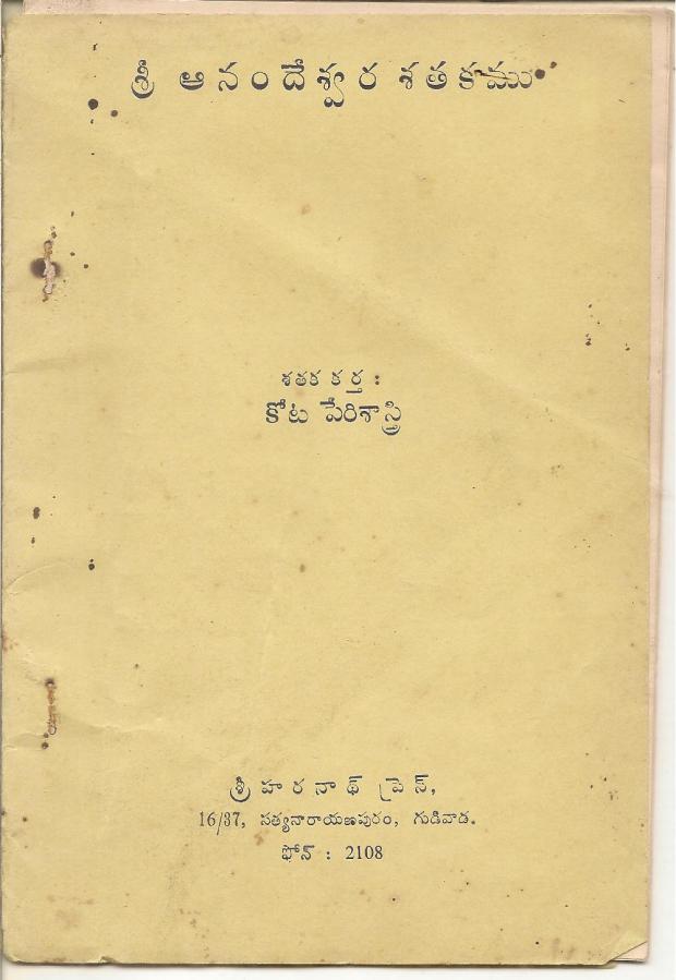 ← అగ్నికి ఆహుతి కాబోయి చేతికి చిక్కిన శ్రీ కోట పేరిశాస్త్రిగారి శ్రీ ఆనందేశ్వర శతకం