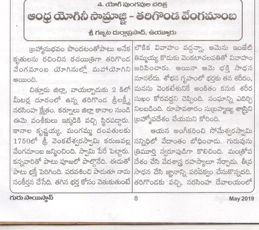 ← ఆంద్ర యోగినీ సామ్రాజ్ఞి తరిగొండ వెంగమాంబ