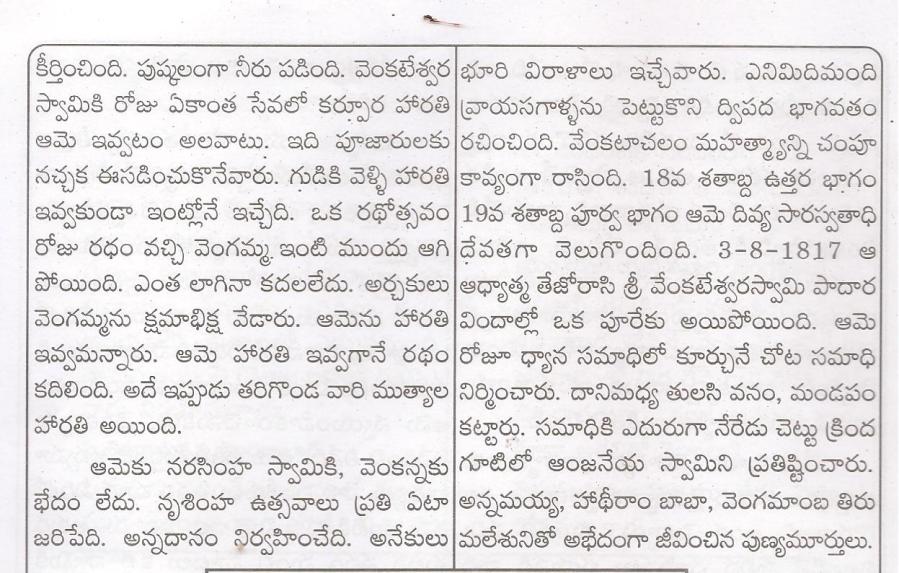 ఆంద్ర యోగినీ సామ్రాజ్ఞి తరిగొండ వెంగమాంబ