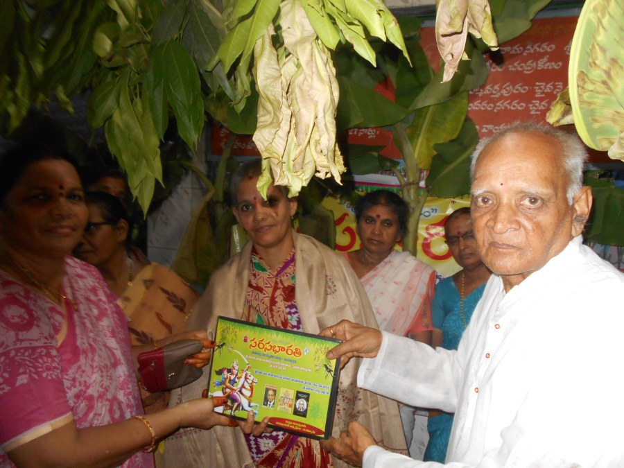 ఉయ్యూరు శ్రీ సువర్చలాన్జనేయస్వామి దేవాలయం లో29-5-19 బుధవారం హనుమజ్జయంతి నాడు సాయంత్రం కాలనీ మహిళామండలి చే శ్రీ హనుమాన్ చాలీసా పారాయణ ,అందులో ఒకరికి సత్కారం ,,,స్వామికి 30 వేలరూపాయలు నగదును తమ కుటుంబం తరఫున సమర్పించిన శ్రీమతి కొండేటి వెంకటేశ్శ్వరమ్మ(22ఏళ్ళక్రితం మేడూరు హైస్కూల్ హెడ్మాస్టర్ గా ఉన్నప్పటి శిష్యురాలు ) గారికి అభిమానంగా చీర ,సారె సరసభారతి తరఫున అంద జేసినచిత్రాలు