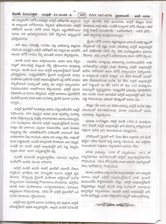 ← పండిట్ రవి శంకర్ కు మామ ,గురువు డా బాబా అల్లాయుద్దీన్ ఖాన్ -మూసి -జూన్
