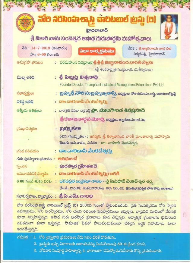 నోరి చారిటబుల్ ట్రస్ట్ వారి ద్వారా శ్రీ కళా సుబ్బారావు గారి గురు పురస్కారం