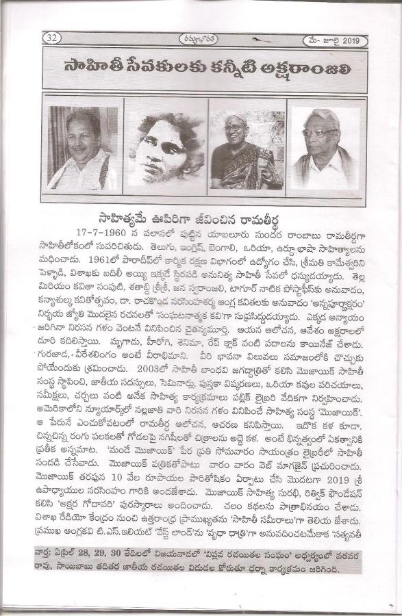 ← జులై రమ్యభారతి మాసపత్రికలో శ్రీ రామతీర్థ శ్రీ మహాస్వప్న ,శ్రీమతి అబ్బూరి ఛాయాదేవి గార్లపై నా వ్యాసం