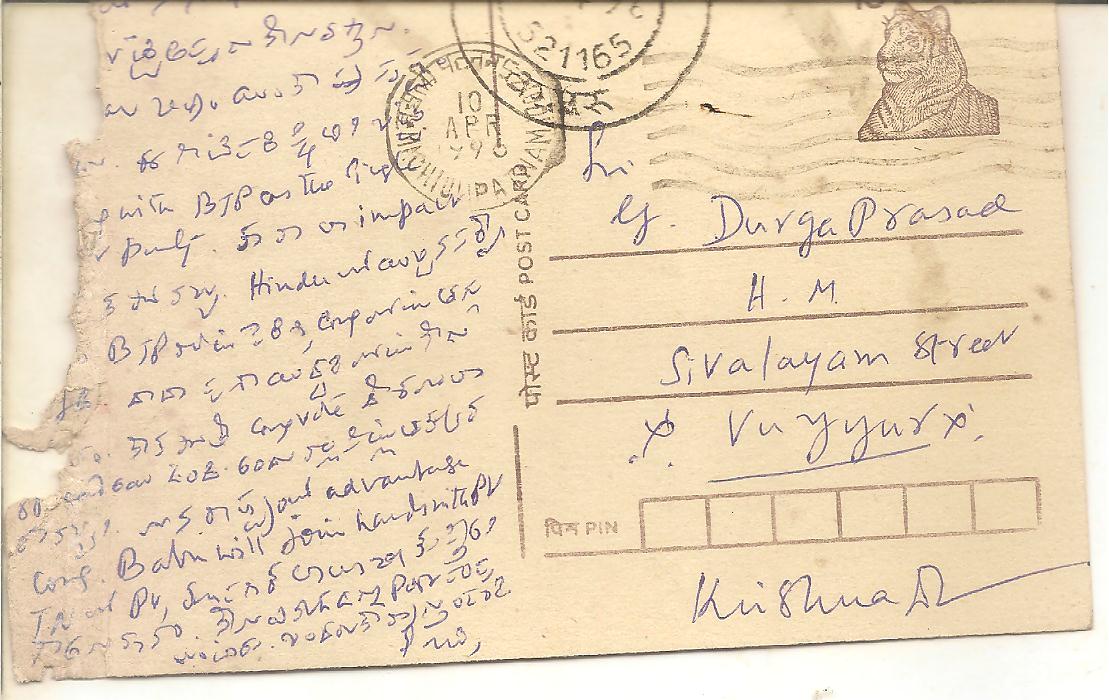 ← శ్రీ ఆర్ ఎస్. కె . గారు 23ఏళ్ళ క్రిందట నాకు రాసిన కార్డు