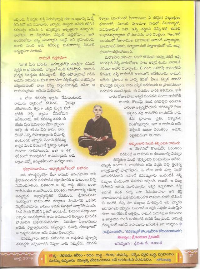 దేహం లో శ్రీరాముడు కొలువున్నకనకమ్మగారు -జులై ఆగస్ట్ శ్రీరామ కృష్ణ ప్రభ