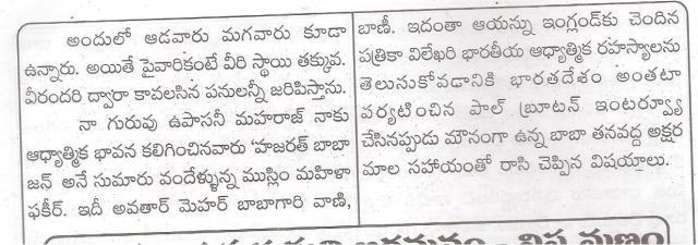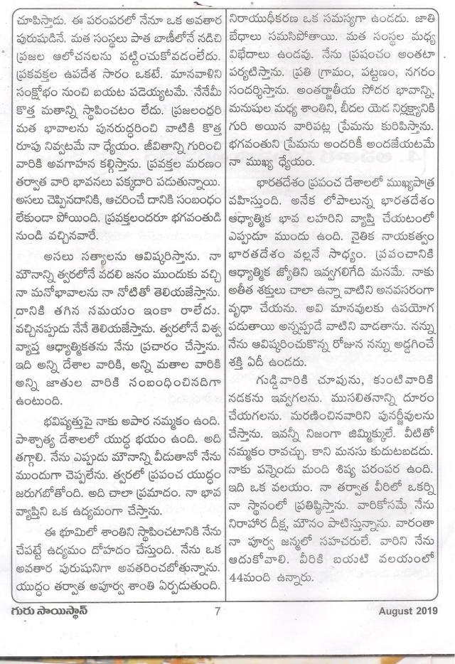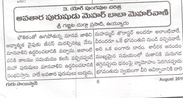 నేను రాసిన” సిద్ధయోగిపుంగవులు ”పుస్తకం లోని ”అవతార పురుషుడు మెహర్ బాబా ”వ్యాసం ఆగస్టు గురు సాయి స్థాన్ లో ప్రచురితం
