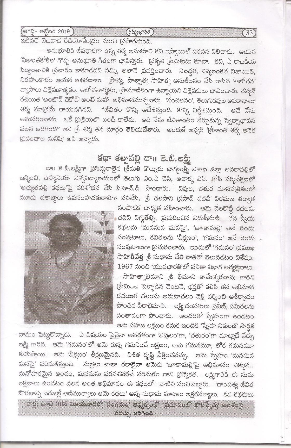 ← సాహితీ దిగ్గజాలకు అక్షర నీరాజనం -గబ్బిట దుర్గాప్రసాద్ -రమ్యభారతి-అక్టోబర్