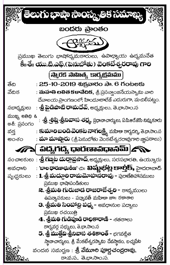 బాల ధారణా ధురీణ చి విష్ణు భట్ల కార్తీక్ చే ”గద్య పద్య ధారణా విధానం ;;25-10-19 మచిలీపట్నం