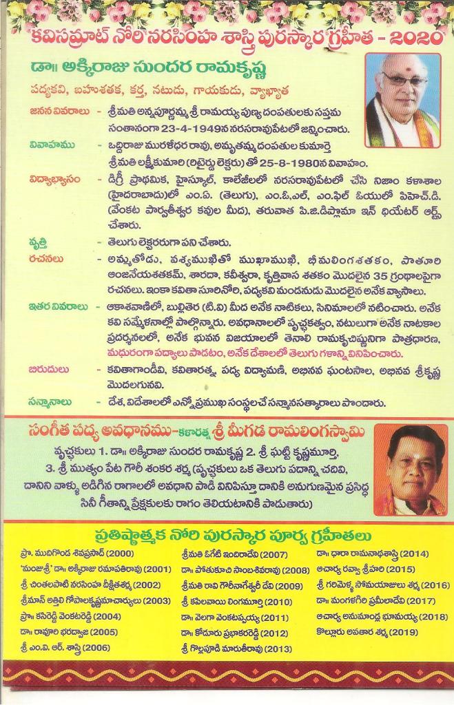 కవి సమ్రాట్ నోరి నరసింహశాస్త్రిగారి 121వ అజయంతి -ఫిబ్రవరి 6-సాయంత్రం త్యాగరాజగానసభ హైదరాబాద్
