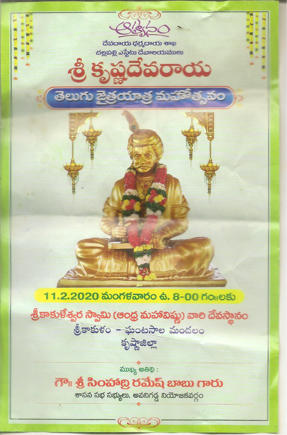 ← కృష్ణ దేవరాయల ఉత్సవం శ్రీకాకుళం లో కవులు రచయితలూ లేకుండా మొక్కుబడిగా జరిపిన వైనం