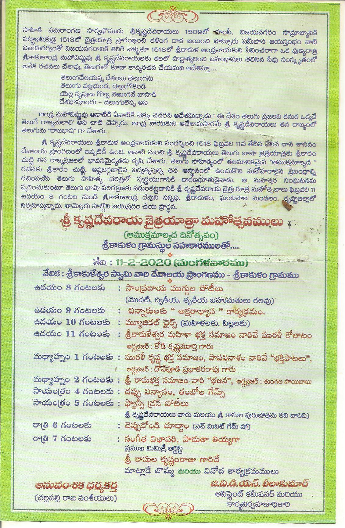 ← కృష్ణ దేవరాయల ఉత్సవం శ్రీకాకుళం లో కవులు రచయితలూ లేకుండా మొక్కుబడిగా జరిపిన వైనం