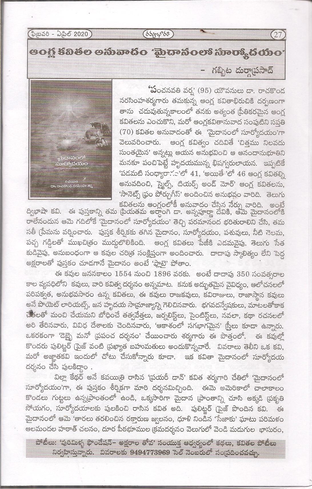 ← డా రాచకొండ శర్మగారి ”మైదానంలో సూర్యోదయం ”పై నా సమీక్ష -ఏప్రిల్ రమ్యభారతిలో