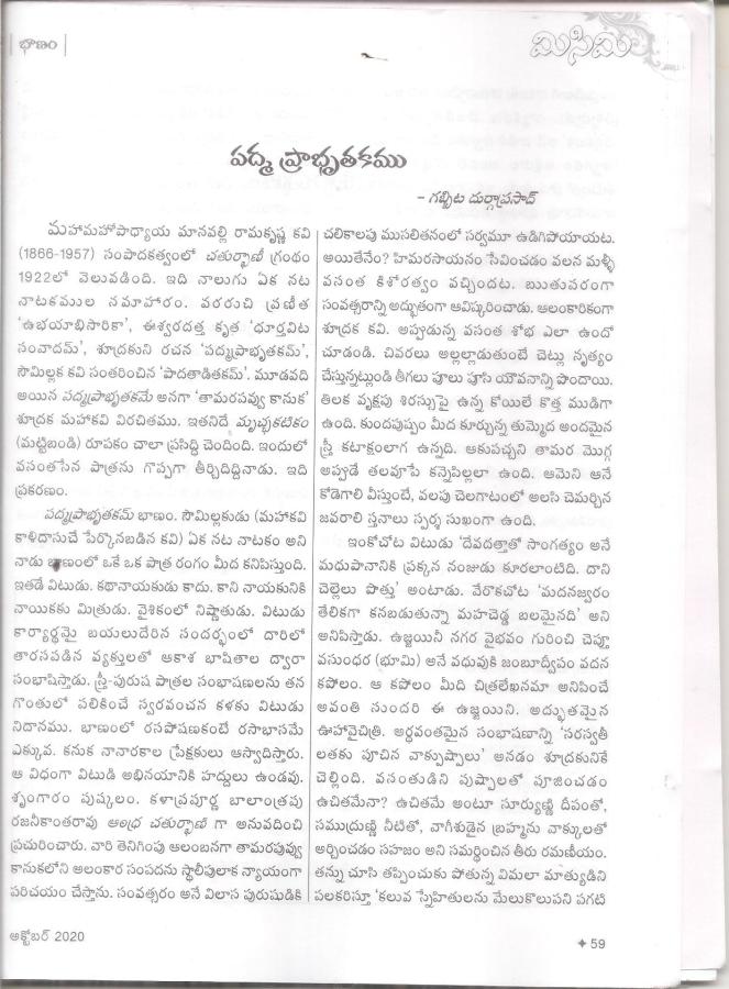 ← సుమారు 10ఏళ్ళక్రితం నేను శూద్రకుని ”పద్మ ప్రాద్భుతకం ”అనే బాణం పై రాసిన వ్యాసం ఈ అక్టోబరు మిసిమిలో ప్రచురితం