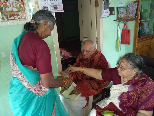 54ఏళ్ళ క్రిందటి ఉయ్యూరు హైస్కూల్ శిష్యురాలుశ్రీమతి కరుణానిధి ఇవాళ మాఇంట్లో మాకు చేసిన సత్కారం