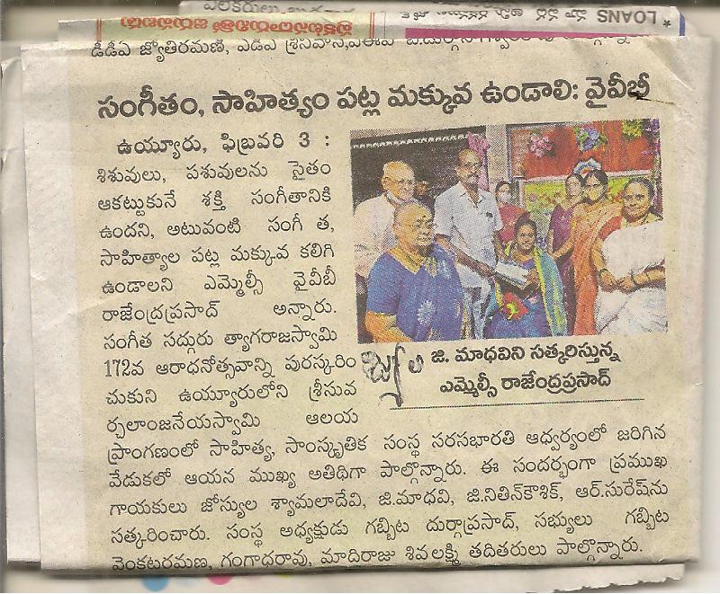 ← సరస భారతి త్యగారాజ ఆరాధనోత్సవం పై జ్యోతి కధనం -4-2-21