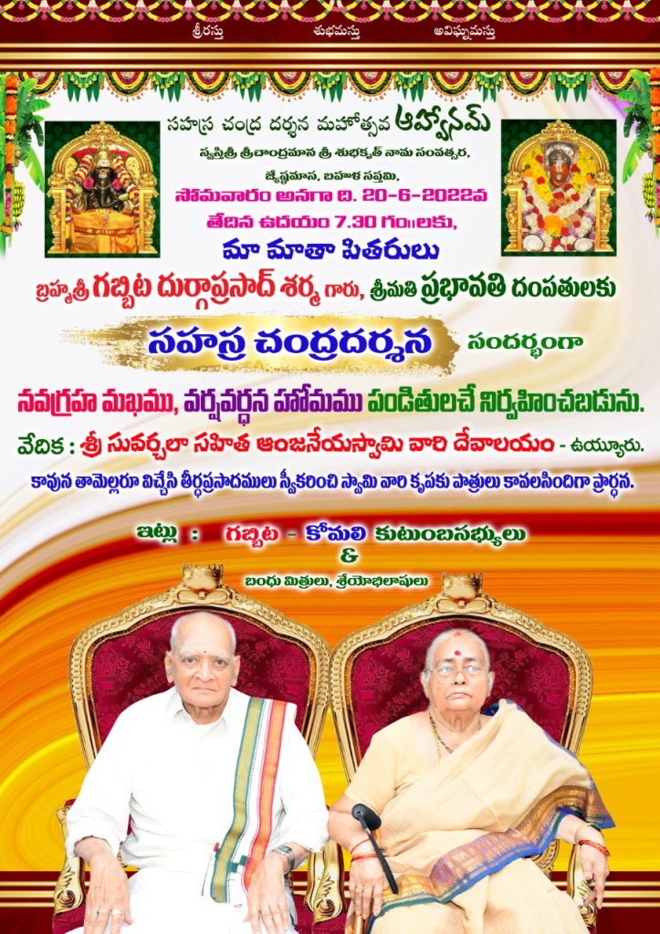 సహస్ర చంద్ర దర్సన -మహోత్సవ ఆహ్వానం