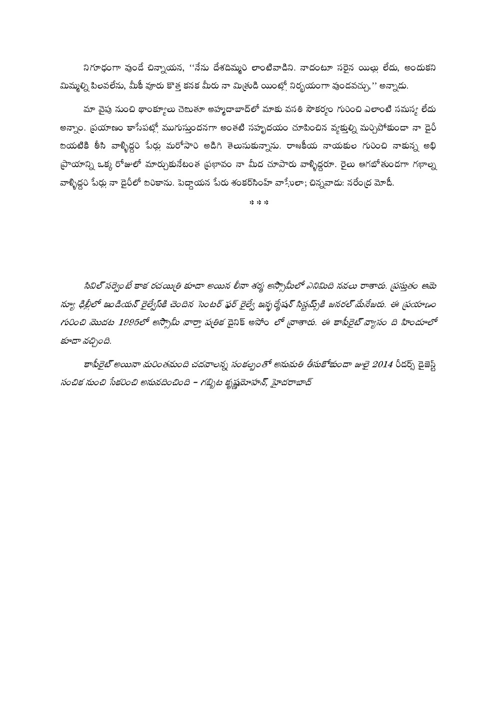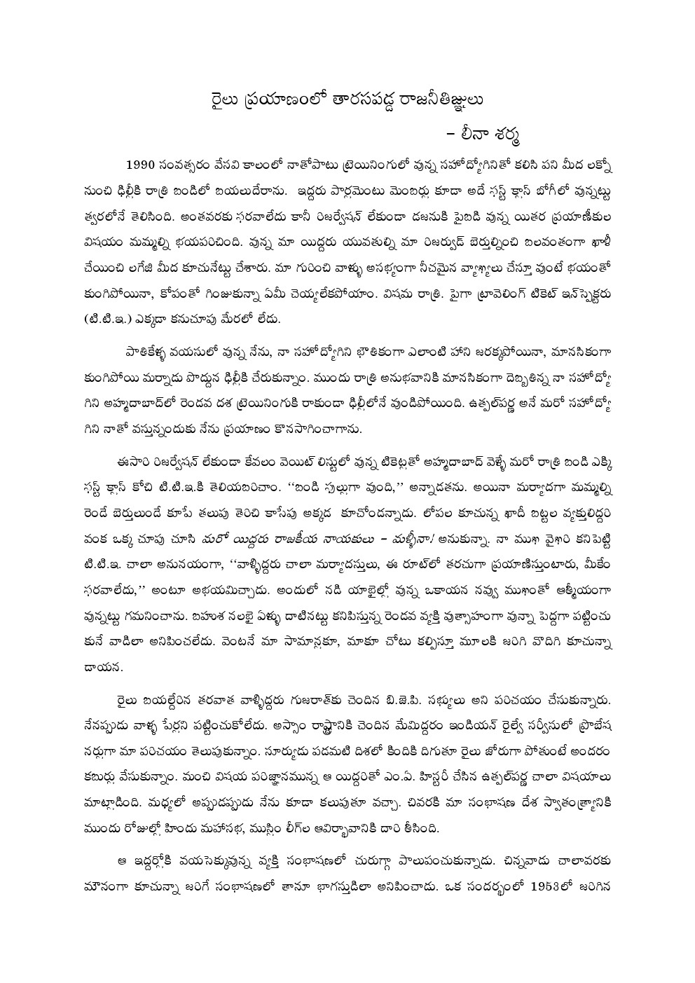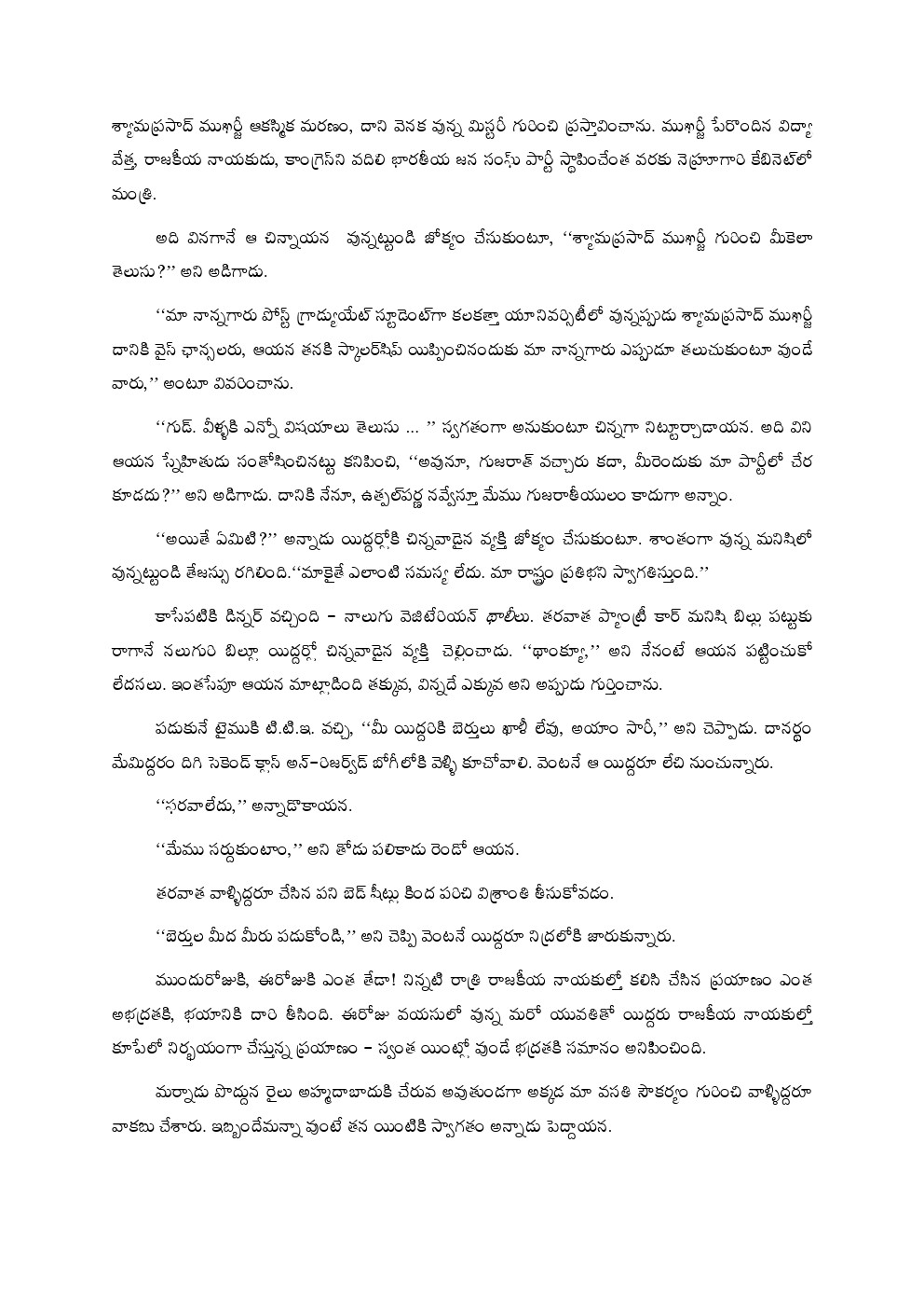 ఏమి మాట్లాడినా, కావాలని కాకపోయినా, లేదూ కావాలని అపకారం చేసే ఉద్దేశ్యంతో తాము అన్నదానికి వ్యాఖ్యానాలు జోడించి ‘పై వాళ్ళకు’ అందజేసే వాళ్ళున్నారనీ , పర్యవసానంగా తాము బడినుంచి వెళ్ళగొట్టబడవచ్చు, దేశ బహిష్కారం కాబడవచ్చు, జైల్లో వేయబడవచ్చు, చంపబడవచ్చునన్న నిత్య భయంతో వేయికళ్లతోతమను తము చూసుకుంటూ గడిపేవాళ్ళు. బతుకన్న తర్వాత ఎప్పటికప్పుడు కొన్ని నిర్ణయాలు తీసుకోవలసి వస్తుంది. ఎవర్ని నమ్మాలి? ఈ మనిషిని ఎంతవరకు నమ్మొచ్చు? ఎంత వరకూ మనసు విప్పి చెప్పుకోవచ్చు? ఈ వ్యక్తీ నామీద KGBకి ఫిర్యాదు చేయవచ్చా? నా గురించి తన స్వప్రయోజనాలకోసం అబద్ధాలు చెప్పొచ్చేమో ?అమెరికన్లకు ఇటువంటి ఒత్తిడి తెలీదు. ‘పెర్సెక్యూషన్’ – పుట్టుకను బట్టీ, మతవిశ్వాసాలను బట్టీ, ఆలోచనా సరళిని బట్టీ శిక్షించటం, హింసించటం, అంతంచేయటం – అన్నది ఒకటున్నదని తెలియకుండా, అటువంటి భయాలు లేకుండా పెరిగాం. మనదేశం భాగ్యవంతమైనది, మనం కాకపోయినా. ఇక్కడ వివక్షత లేని న్యాయ చింతన ఉన్నది. పాత రోజుల్లో, బాణామతి వంటి క్షుద్రారాధకుల్ని తరిమి కొట్టినట్టుగా కమ్యూనిస్ట్ల వెంటబడి వేటాడటమన్న మెకార్తీఇజం – చెడ్డదే కానీ, అది సాగినది చాలా స్వల్పకాలంపాటు.. – చెలరేగినప్పుడు కూడా ఆ పాత తరం వాళ్ళు సోవియట్ ప్రజలు భయపడినంతగా భయపడింది లేదు.